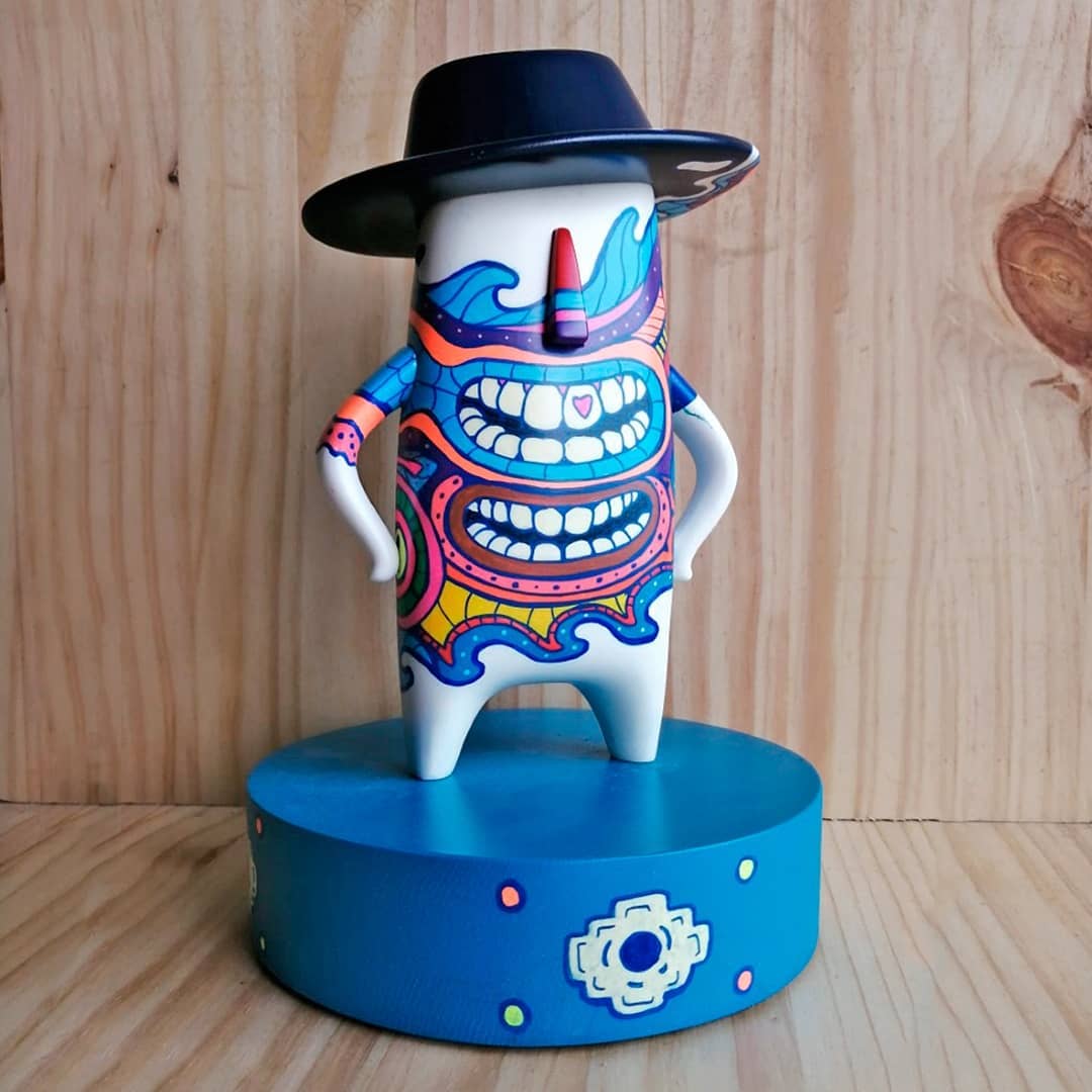 Tiene un lenguaje personal lleno de detalles, iconos, mensajes simbólicos y referencias Pop, que transportan a cada espectador a mundos con personajes fantásticos llenos de color y detalles. Su vibrante trabajo, es siempre fiel a la idea, sensación o emoción que quiere transmitir.