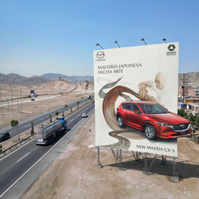 Inspirados por esta filosofía y su concepto “Feel Alive”, convocamos al talentoso artista Paulo Villegas, quien se embarcó en un viaje creativo para capturar la esencia de la marca en un gran lienzo. Cada trazo de su obra de arte refleja la perfección de los detalles, creando un impactante panel publicitario que se mostró majestuosamente a lo largo de la Panamericana Sur de Lima durante la temporada de verano.